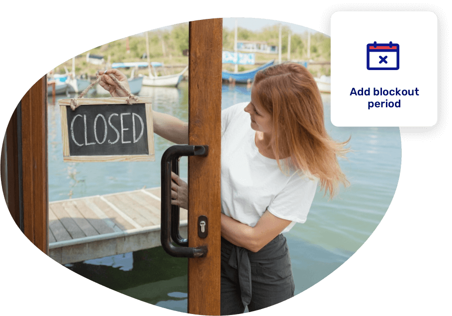 Need to take boats out of service for a few hours, days, or even months? With Blockout dates, you can instantly block your schedule.